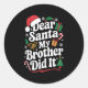 Adesivo Redondo Dear Santa My Brother Did It Christmas Humor