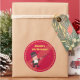 Etiquetas de festa com ilustração de um menino giro em uma roupa mágica de jaqueta de casaco preto, chapéu de cima e gravata de arco rosa. Ele está acenando uma varinha mágica em sua mão criando faíscas. Fundo vermelho com pontos amarelos para borda. Perfeito como adesivos decorativos para suas favoritos para festas para uma festa de aniversário mágica temida.