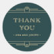 Estes adesivos de casamento glamourosos apresentam uma rotação moderna no deco de arte clássico. Ornamentado, falso ouro de champanhe parece bordas geométricas e ornamentação decoram um elegante fundo verde esmeralda para um olhar dramático e casamento vintage. A tipografia de ouro clássico de champanhe diz "obrigado", fazer estes perfeitos para adicionar aos seus favores de casamento.