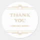 Estes adesivos de casamento glamourosos apresentam uma rotação moderna no deco de arte clássico. Ornamentado, ouro falso parecem bordas geométricas e ornamentação decoram um fundo branco elegante para um olhar dramático e casamento vintage. A tipografia clássica de ouro falsa diz "obrigado você", fazer estes perfeitos para adicionar aos seus favores de casamento.