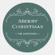 Estes adesivos elegantes de férias apresentam uma rotação moderna no deco clássico de arte. Ornamentado, bordas geométricas brancas e ornamentação decoram um fundo verde festivo para um espetacular olhar de férias. A tipografia clássica diz "Feliz Natal".