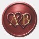 Adesivo Redondo Deep Red Two Hearts Intertwined Monogram Wedding