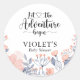 Adesivo Redondo Deixe a Aventura Começar a Rosa Chá de fraldas Vio
