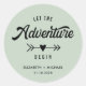 Um adesivo verde personalizado para sua correspondência de casamento e favoritos para festas com "Let The Adventure Begin" escrito em uma mistura de simples tipografia e um roteiro, um coração com uma seta, e seus nomes e data de casamento.