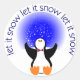 Pinguim bonito com gravata vermelha de arco comemora esportes de inverno e inverno com o banner Let It Snow através do céu.