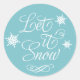"Deixe-o nevar" design de um adesivo de férias em um belo roteiro branco. Cor de fundo azul-aqua personalizada.