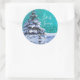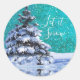 Adesivo Redondo Deixem-na nevar, árvore de inverno, azul-clara