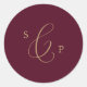 Estas delicadas focas de ouro e monograma monográfico são perfeitas para um casamento moderno. A design romântica minimalista apresenta uma magnífica e elegante tipografia amarela ouro champanhe num fundo vermelho burgundy com um aspecto simples e limpo. Personalize estes autocolantes com as iniciais da noiva e do noivo.