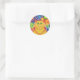 Querida Groovy! Um gato listrado amarelo e laranja com bigodes giratórios e um fundo de arco-íris psíquico com padrão. Adesivo redondo com um design personalizável amarelo, laranja, vermelho, azul, verde, rosa, roxo e branco para que você personalize com seu próprio texto, imagens e ideias. Um desenho de lápis colorido digitalmente melhorado por Jess Perry.