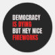 Adesivo Redondo Democracy Is Dying But Hey Nice Fireworks Anti Tru