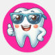 Dentes engraçados com polegares para cima e óculos de sol esportivos dos dentes.