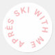 Depois do Ski Comigo, tema de festa de despedida de solteira de ski rosa gelo, adesivo redondo. Perfeito para uma viagem de ski de despedida de solteira ou lembrancinhas de festa de Depois do Ski. Projetado para combinar com nossa Coleção de Depois do Ski Rosa de Depois de Todo o Dia.