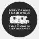 Design com tema de desculpas para um dono de camper que lamenta suas frustrações no estacionamento, exibindo um sentimento humorístico e relacionado.
