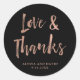 Esses adesivos de casamento modernos e frescos apresentam um roteiro de ouro falso manuscrito que diz "amor e obrigados" em um fundo preto e rico.