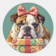 Um adesivo de aniversário engraçado para quem ama buldocos! Uma linda Bulldog com sua cabeça descansando em um presente de aniversário.