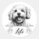 Adesivo Redondo Desenho Personalizado à Mão de Cão Bichon Frise