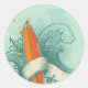 Ilustração gráfica de uma prancha de surfe e ondas oceânicas com design de aspecto meteorológico