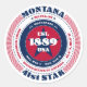 Este adesivo faz uma maravilhosa lembrança ou presente com este design. O esquema ousado e patriótico de cores e a proeminente exibição do nome do estado, "Montana", evocam sentimentos de liberdade, lealdade e unidade. Excelente para comemorações, feriados nacionais e partidos patrióticos.