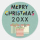 Um bonito adesivo de Natal com um design de Tipografia de estilo moderno e gráficos de caixa de presentes. O exterior diz "Feliz Natal 20XX" para você mudar seu ano preferido
