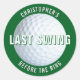 Leve isso para o campo com este último balanço antes da aliança do sticker de despedida de solteiro. Projetado com uma bola de golfe, é perfeito para fãs de esportes, membros de clubes e jogadores. Personalize com o nome do noivo para uma lembrança personalizada que certamente será bem recebida.