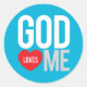 Deus me ama. Uma tipografia branca simples com um coração vermelho num fundo azul brilhante. Esta declaração está disponível em vários produtos. Presente perfeito para cristãos!
