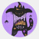 Adesivo Redondo Dia de as Bruxas engraçado de Gato Preto Retroativ