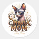 Sphynx Cat Mãe Redonda Personalizada para Dia de as mães ou qualquer ocasião. Apresentando um lindo gato sem cabelo com 'Sphynx Mãe' em letras elegantes e sotaques de ouro, nosso adesivo é o presente perfeito para mães de gatos sem cabelo para Dia de as mães!