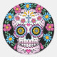 O crânio de açúcar Dia de los Muertos está cercado por flores coloridas.