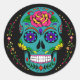 Adesivo Redondo Día de los Muertos Teal Sugar Skull Halloween