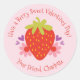 Um adesivo de dia de os namorados de morango rosa e vermelho para crianças. Apresenta um morango branco com as palavras "Come a Berry Sweet Dia de os namorados". O sotaque bonito para namorados em sala de aula para crianças trata bolsas ou cartões de Dia de os namorados para amigos. Personalize-o com o nome de sua escolha. Projetado para você pelo Blackberry Boulevard.
