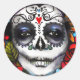 Dia floral vibrante da imagem morta na sua escolha de decal brilhante ou mate. A joia rica em flores tonadas rodeia o rosto de uma mulher pintada para o Dia Mexicano dos Mortos. Tome tempo para cheirar os rosas...