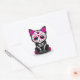 Adesivo Redondo Dia Rosa Bonito do Gato Gatinho Morto, branco