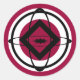 Este adesivo apresenta um desenho abstrato geométrico interessante baseado no tema da astronomia. Um diamante solteiro é sobreposto a um padrão de esferas e elipses em tons de preto, branco e vermelho. Um sol preto estilizado está no centro.