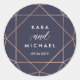 Esses adesivos de casamento de na moda apresentam um esboço geométrico falsa de diamante rosa de ouro com texto branco moderno e caligrafia, em um fundo azul-da-noite.