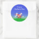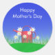 Uma cena 3d ao ar livre de uma lata vermelha brilhante de água na grama verde com margaridas e um céu azul. O texto personalizável diz "Dia de as mães feliz".
