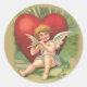Uma ilustração muito bonita do Dia de os namorados de safra faz um adesivo ou selo de envelope deliciosos. Cupido está sentado no chão descansando contra um enorme coração vermelho e tocando flauta. Muito fofo.