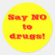 Palavras vermelhas "Diga não às drogas" em um fundo amarelo. Este adesivo seria bom para as escolas ou outros locais de pessoas jovens motivá-las a dizer não à droga.