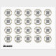 Você pode digitar o URL do seu site para gerar seu código QR personalizado. Há duas linhas de texto de exibição em preto que você pode editar para mostrar uma mensagem personalizada. Estes adesivos elegantes têm um texto preto num círculo branco com uma borda falsa (e não em folha) de ouro. É uma renderização artística.