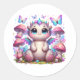 dino pastel chubby com cogumelos e borboletas Adesivo redondo clássico