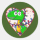 Adesivo Redondo Dinossauro de Natal embrulhado em luzes desenho an