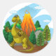 Adesivo Redondo Dinossauro e erupção vulcânica