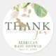 Feita para combinar o nosso elegante tema do dinossauro boho, este adesivo carregar o tema do cartão com um dinossauro dourado falso que sobrepõe o OBRIGADO de trabalho com a palavra que você está em um roteiro dourado abaixo. Verde verde e ouro também enfeita o topo do obrigado que você cola. Edite facilmente seu evento, seja para um aniversário ou chá de fraldas.