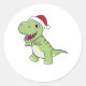 Adesivo Redondo Dinossauro Natal Neve Inverno T-Rex Dino