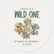 Celebre seu primeiro aniversário selvagem com nosso adesivo de 1º Festa de aniversário do Dinossauro Selvagem! Esses adesivos se coordenam perfeitamente com nosso convite e apresentam dinossauros bebês bonitos em chapéus de festa.