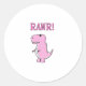Adesivo Redondo Dinossauro T-Rex, Cartoon Rosa, Bonito E Irritado