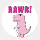 Adesivo Redondo Dinossauro T-Rex, Cartoon Rosa, Bonito E Irritado