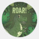Adesivo Redondo Dinossauro T-rex de desenho em tons verdes com tex