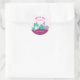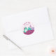 Adesivo Redondo Dinossauros Cons Rosa Aniversário Obrigado