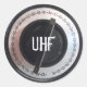 Fotografia da discagem de TV UHF. Cor de fundo e texto personalizáveis.