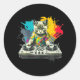 Adesivo Redondo Dj Cat, música de casa divertida, amante de música